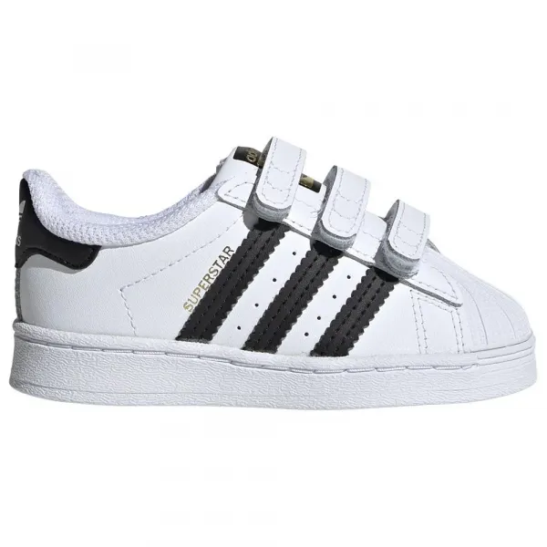 이 유아용 아디다스 슈퍼 스타 슈즈는 70 년대의 첫 번째 신발과 동일한 클래식 한 라인을 자랑합니다.