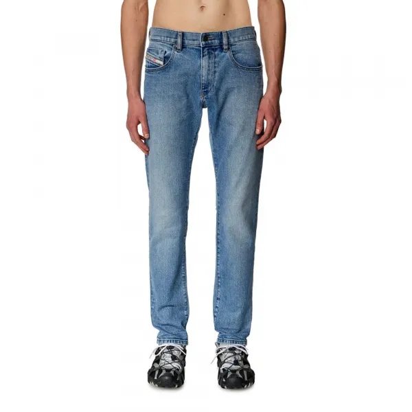 이 다용도 청바지는 지퍼 플라이로 마감된 편안한 실루엣을 특징으로 합니다.