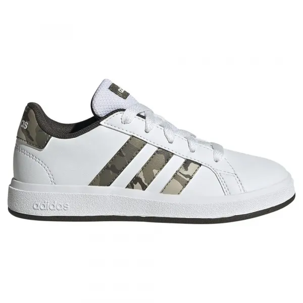 이 끈 달린 아디다스 그랜드 코트 신발은 카모 3-스트라이프가 있어 버스를 타기 위해 경주하거나 놀이터에서 친구를 쫓을 때마다 활력을 불어넣어 줍니다.