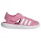 이 아디다스 어린이 샌들은 조절 가능한 후크 앤 루프 윙이 있어 발이 젖어도 편안하게 맞아.