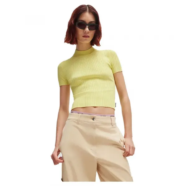 -기본 점퍼, 모크넥, 짧은 길이, 불규칙한 립 구조의 Vi 크레이프 기본 점퍼, 모크넥, 짧은 길이, 불규칙한 립 구조의 Vi 크레이프.