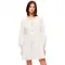 티어드 디자인은 드레스에 가볍고 하늘거리는 느낌을 더하고, 스위스 도트 원단에 은은하게 반짝이는 실이 시각적인 흥미를 유발합니다.