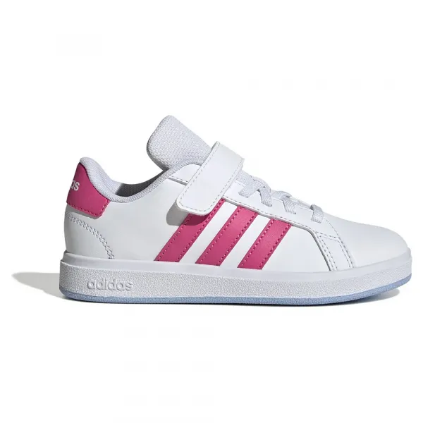 인조 가죽 갑피는 부드러운 촉감을 위해 안감 처리되었으며, 측면에는 상징적인 3-스트라이프가 마감 처리되었습니다.