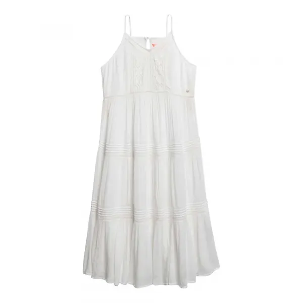 드레스 전체에 섬세한 레이스 디테일로 정교하게 제작되었으며, 티어드 스커트로 마무리되어 걸을 때마다 멋스럽고 우아한 움직임을 선사합니다.