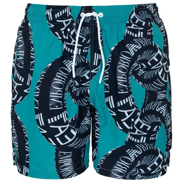 측면에 EA7 로고 자카드 라벨이 있는 외부 라운드 코드입니다.
