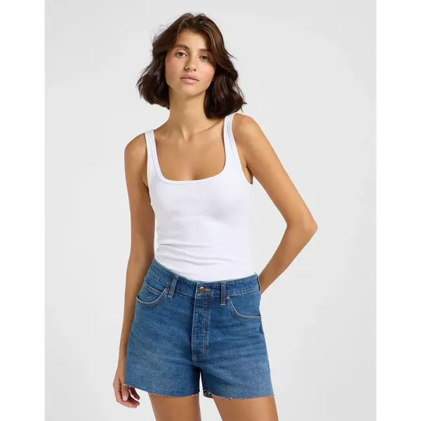 밝은 흰색의 저희 스퀘어 탱크는 90년대 스타일과 세련된 현대적인 디테일을 결합했습니다.