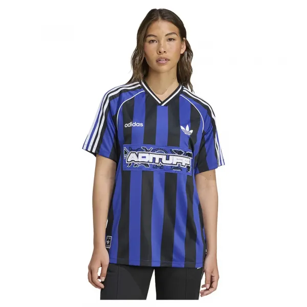 어깨를 따라 흐르는 시그니처 3-스트라이프와 가슴의 로고는 스포티한 룩의 기반이 되며, 루즈 핏과 컬러 포인트는 자유로운 정신을 더합니다.
