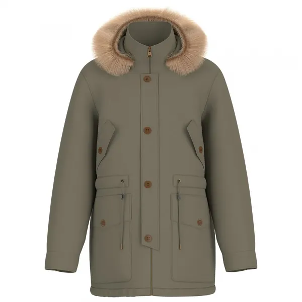 사양:- 겉감 (주요 원단): 100% 폴리아미드- 안감: 100% 폴리에스터- 인조 모피: 71% 아크릴, 16% 폴리에스터, 13% 모다크릴- 충전재: 100% 폴리에스터.