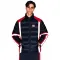 퀼팅 컬러블록 디테일, 지퍼 웰트 포켓 및 가슴 로고 패치.