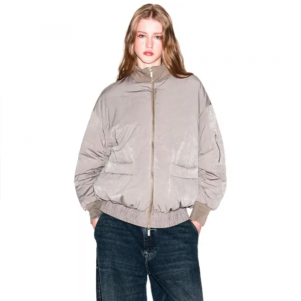 제품 유형: 봄버 재킷 성별: 여성 핏: 오버사이즈 여밈: 더블 슬라이더 풀 지퍼 소재 유형: 합성 디테일: 지퍼, 리브 니트 칼라, 엘라스틱 밑단 모델: XW000670_AF16210