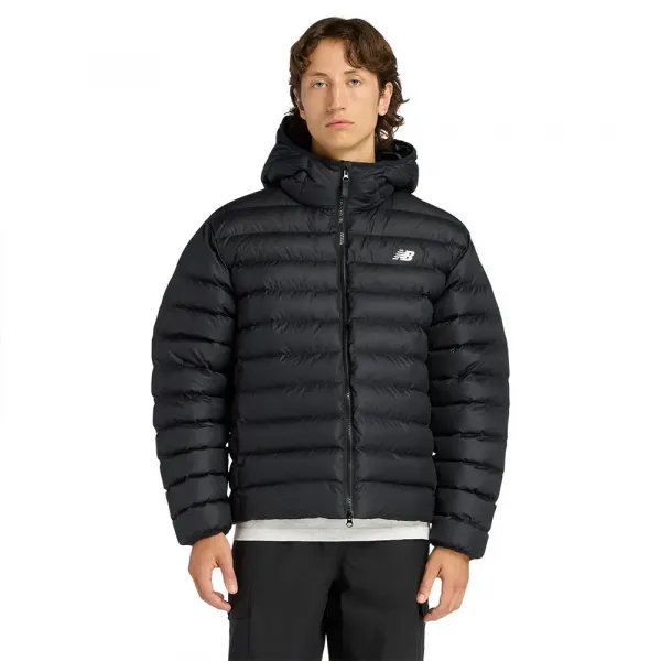 NEW BALANCE 스포츠 에센셜 푸퍼 재킷은 첨단 합성 충전재를 사용하여 체온을 효과적으로 가두어 추위에 대한 열 장벽을 형성합니다.