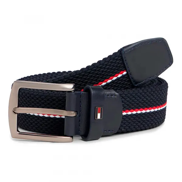 이 블랙 탄성 벨트는 시그니처 삼색 스트라이프가 있는 스트레치 직조와 브러시드 메탈 버클이 특징이며, 캐주얼 의상에 유연성과 세련미를 더하기에 완벽합니다.