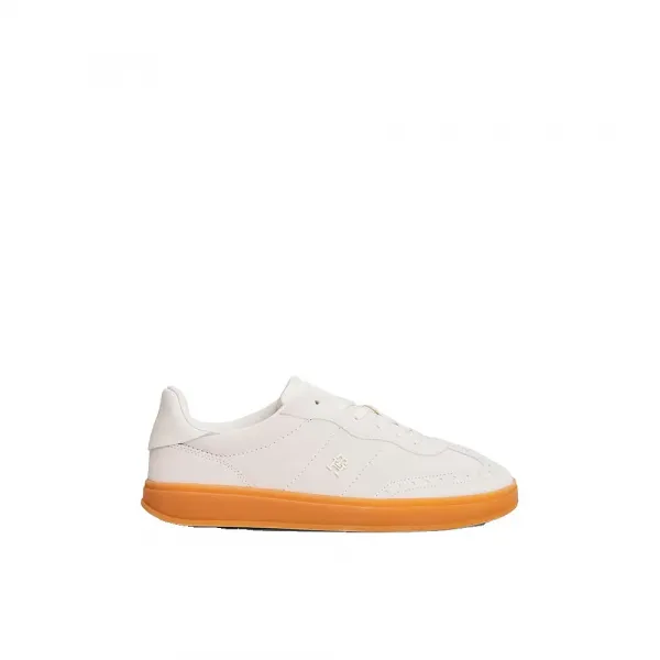 100% 스웨이드로 제작된 베이지색 여성용 스니커즈로, 대비되는 힐 탭, 질감이 있는 밑창, 측면의 Tommy Hilfiger 플래그가 특징입니다.