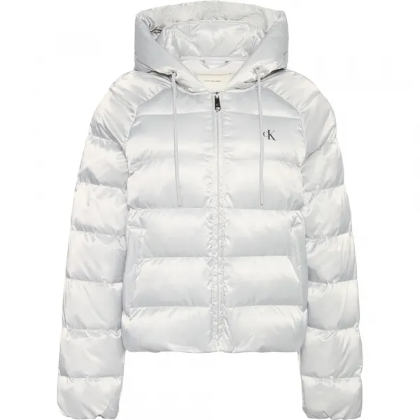 가슴과 등에 CK 모노그램이 새겨진 폴리에스터와 나일론 혼방 여성용 패딩 재킷.