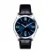 선레이 효과가 있는 블루 다이얼, 마커 및 12시, 3시, 6시, 9시 방향에 로마 숫자.
