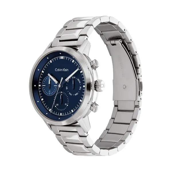 44mm 스테인리스 스틸 케이스, 푸른 빛깔의 다이얼, 스테인리스 스틸 링크 브레이슬릿.