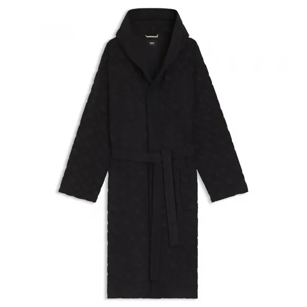 특징:- 핏 길이: 스탠다드 길이- 네크라인: 후드- 상의 여밈: 벨트 여밈- 하의 앞면 포켓: 옆면 슬래시 포켓사양:- 소재: 면 80%, 폴리에스터 20%