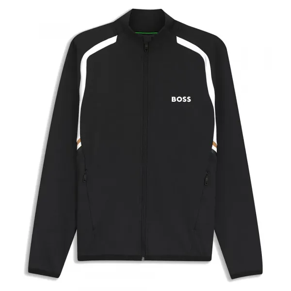 특징: - 레귤러 핏 - 스탠드 칼라 - 잠금 방식: 지퍼 잠금 - 상의 포켓: 지퍼 포켓 - 긴소매 - 신축성 있는 커프스 - 기본 길이 사양: - 소재: 91% 폴리에스터 (재활용), 9% 엘라스테인 세탁 방법: - 찬물에 약하게 기계 세탁 탈수 속도 줄임.