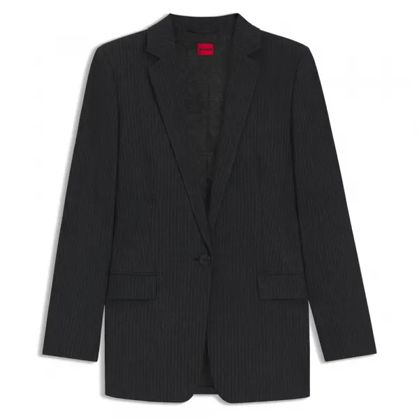 특징:- 레귤러 핏- 노치 라펠- 잠금 방식: 버튼 여밈- 버튼 개수: 1개- 상단 포켓: 플랩 포켓- 커프스 없음- 벤트 없음- 전체 안감사양:- 소재: 62% 폴리에스터, 33% 비스코스, 5% 엘라스테인, 안감: 55% 폴리에스터, 45% 비스코스, 소매 안감: 95% 폴리에스터, 5% 엘라스테인관리:- 세탁 금지- 표백 금지- 회전식 건조 금지- 낮은 온도에서 다림질- 약한 드라이 크리닝