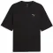 이 티셔츠의 특징은 의도적으로 디자인된 루즈 핏으로, 몸에 자연스럽게 떨어져 현대적이고 편안한 실루엣을 연출합니다.