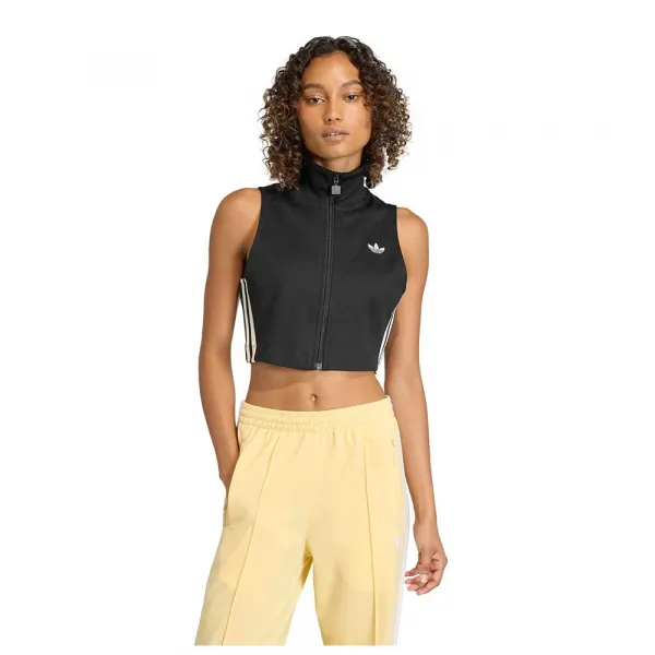 안전한 착용감을 위한 지퍼 잠금 방식의 슬림핏 슬리브리스 탑입니다.
