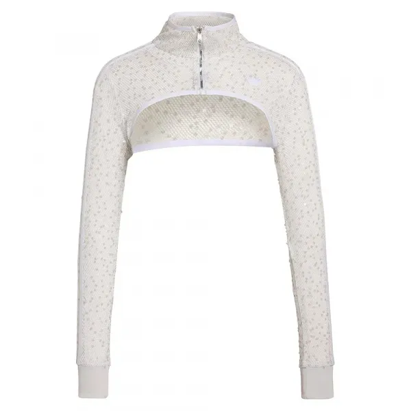이 트랙수트 상의의 하이넥과 지퍼 여밈은 시크한 디자인에 기능적인 면모를 더해줍니다.