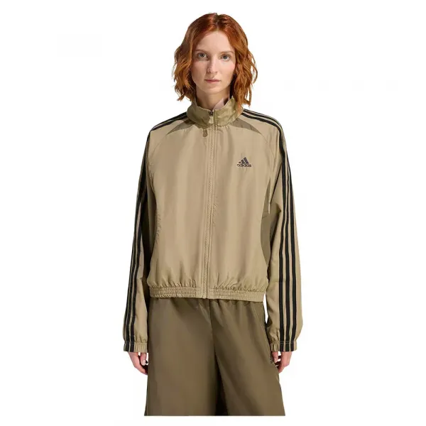 편안함과 쉬운 레이어링을 위한 풀 지퍼가 있는 대담한 트랙수트 탑.