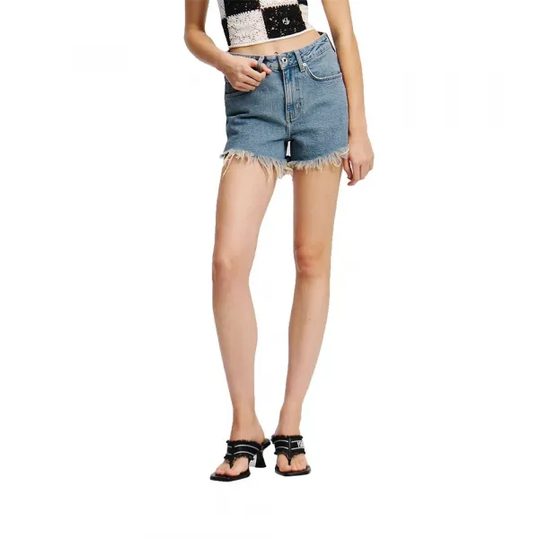기술 사양: 제품 코드: A2W10088 카테고리: 의류 / 바지 성별: 여성 제품 유형: 쇼츠 소재: 데님 / 면 데님 밑단: 컷팅, 날것 그대로의 마감 잠금 방식: 브랜드 버튼이 있는 지퍼 플라이 KLJ 시그니처 디테일로 강조된 편안한 여름 날씨 룩을 위한 컷팅 밑단의 릴랙스드 데님 쇼츠.