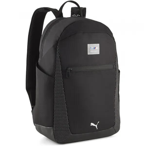 (bM: 재활용 소재 (50%)) 깔끔하고 둥근 디자인의 백팩 메인 수납공간으로 연결되는 양방향 지퍼 개폐 전면 지퍼 포켓 메인 수납공간 뒷면에 신축성 있는 입구의 내부 슬립인 포켓 측면 슬립인 포켓 에어메쉬와 플라스틱 하드웨어가 적용된 패딩 처리된 조절식 어깨 스트랩 전면 플라스틱 파이핑 실리콘 BMW M 로고 배지 겉감: 100% 폴리에스터 안감: 100% 폴리에스터 직조.