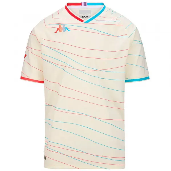 히트 트랜스퍼로 적용된 가슴과 소매의 오미니 로고, 히트 트랜스퍼로 적용된 등판 칼라의 레터링.