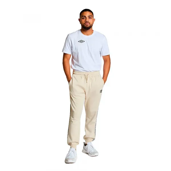 주요 특징 및 기술 사양: 핏: 테이퍼드 레그의 레귤러 핏 길이: 긴 풀렝스 디자인 허리 밴드: 맞춤형 핏을 위한 외부 조절 드로코드가 있는 탄성 허리 밴드 포켓: 편리한 보관을 위한 두 개의 측면 슬립인 포켓 커프스: 안전한 핏과 현대적인 실루엣을 위한 립 앵클 커프스 브랜딩: 양쪽 다리를 따라 있는 아이코닉한 UMBRO 다이아몬드 로고 테이핑 브랜딩: 허벅지에 자수 처리된 UMBRO 스택형 다이아몬드 로고 스포츠 역사가 깃든 아이템으로 라운지웨어와 스트리트웨어 게임을 한 단계 업그레이드하세요.