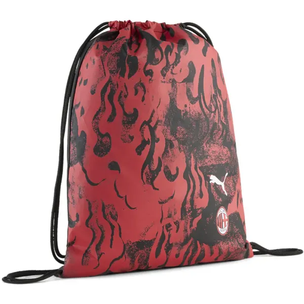 스트링 조절 가능한 입구, 두꺼운 스트링은 어깨끈으로도 사용 가능, 옆면 주머니 지퍼 개폐, 앞면 패널에 클럽 엠블럼 및 푸마 로고 배지