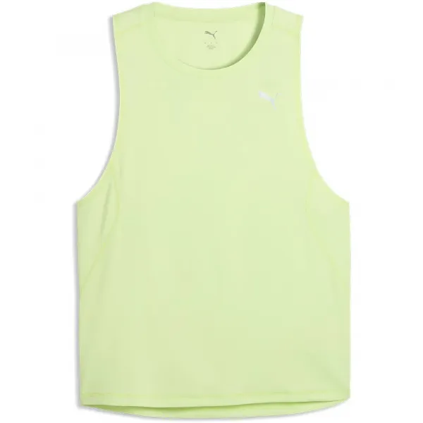 상세 정보: 레귤러 핏 민소매 레귤러 기장 크루넥 푸마 브랜딩 디테일.
