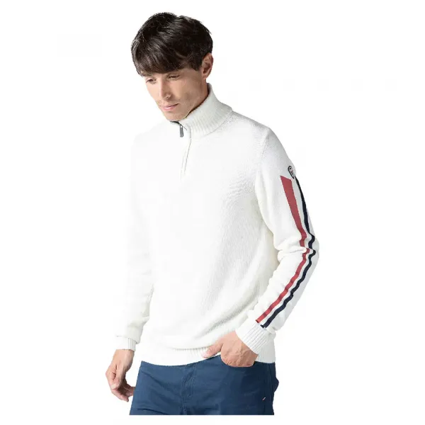 남성용 로시뇰 시그니처 슬리브 니트 스웨터는 프랑스 국기에서 영감을 받은 색상으로 알파인 스타일을 일상에 담았습니다.