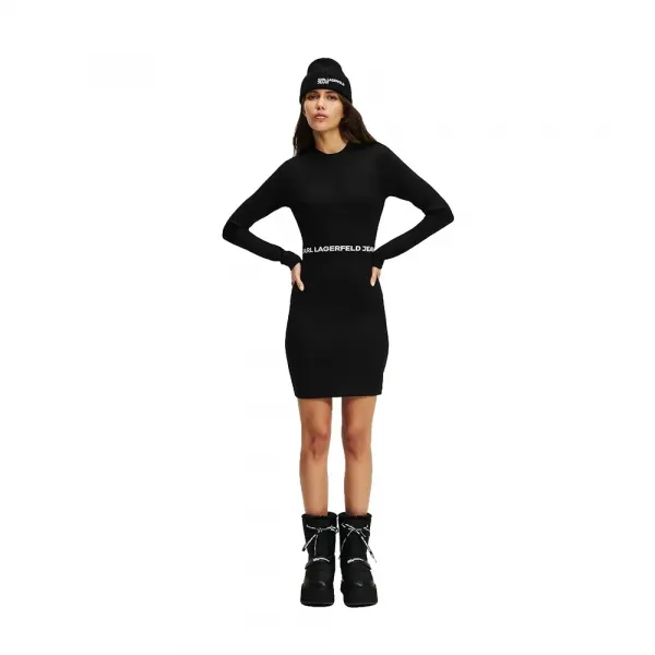 페미닌하면서도 모던한 이 긴팔 드레스는 슬림한 실루엣과 플레어 스커트, 그리고 자신감 있고 편안한 스타일을 위한 강조된 KARL LAGERFELD JEANS 로고 허리 밴드를 특징으로 합니다