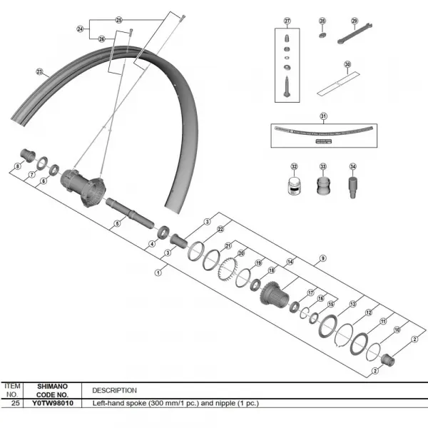 기술 사양 * 브랜드: SHIMANO * 모델 / 부품 번호: Y0TW98010 * 길이: 300mm * 유형: 스트레이트 풀 * 주요 종목: MTB 사이클링 * 시리즈: XTR M9200 * 특정 호환성: SHIMANO 프론트 휠 WH-M9200-TL-F15-B-29 * 포함 사항: 스포크 1개, 니플 1개