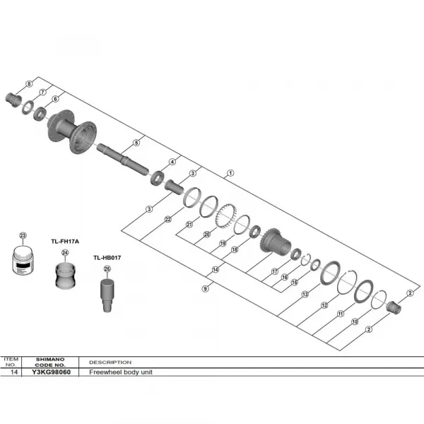 기술 사양: * 제품명: Shimano Freehub Body Y3KG98060 * 브랜드: Shimano * 시리즈: XTR M9100 * 부품 번호: Y3KG98060 * 주요 호환성: Shimano FH-M9210 리어 허브 * 속성: 카세트 바디 * 카세트 바디 유형: Shimano MICRO SPLINE * 단수: 12단 * 체결 시스템: SCYLENCE