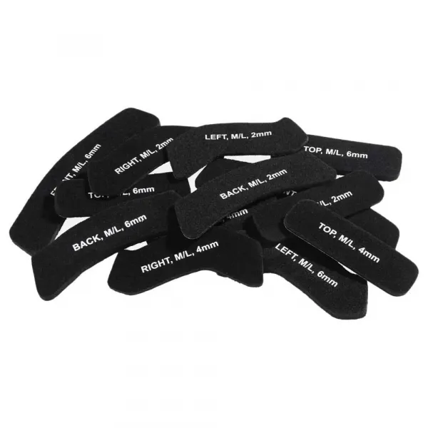 주요 기능: * 다중 두께 패드 세트: 헬멧 내부를 세밀하고 구체적으로 조정할 수 있도록 다양한 크기의 패드가 포함되어 있습니다.
