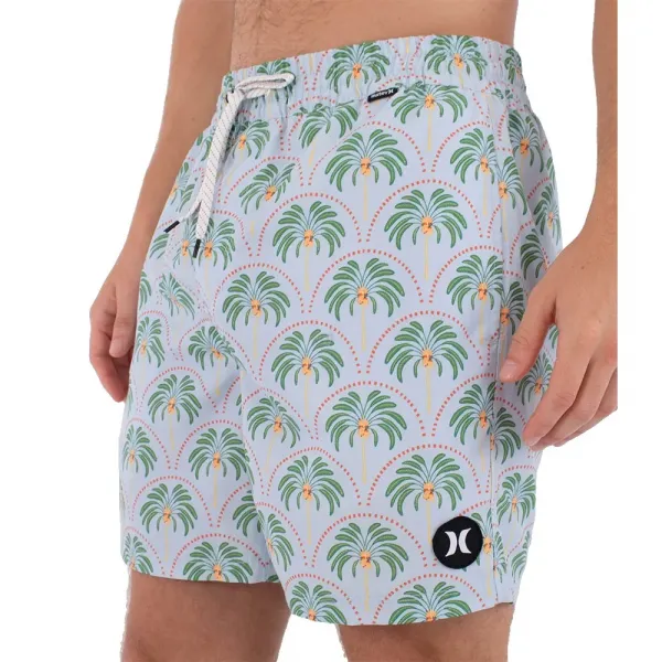 전체 프린트 디자인은 과감한 개성을 더하고, 한쪽 다리에는 헐리 로고 패치가 부착되어 있습니다.