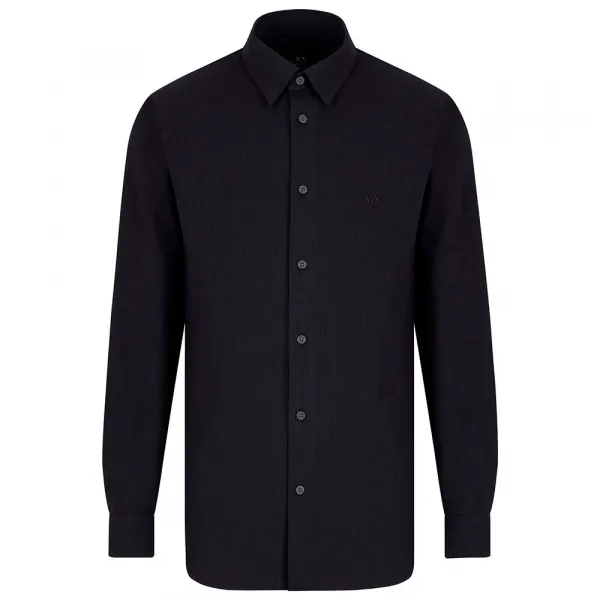 마지막으로 셔츠 가슴 부분에 섬세하게 자수된 상징적인 아르마니 익스체인지 로고가 독특함을 더합니다.