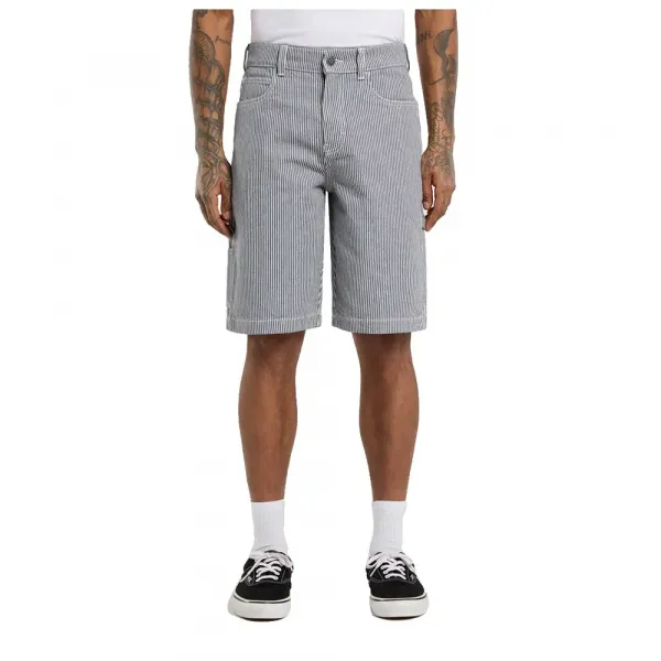 12온스 가먼트 워싱된 히코리 코튼으로 제작되었으며, 부드러운 촉감, 둥근 앞주머니, 직조된 디키즈 라벨이 있는 뒷면 카펜터 포켓, 망치 고리, 자 및 도구 포켓이 특징입니다.