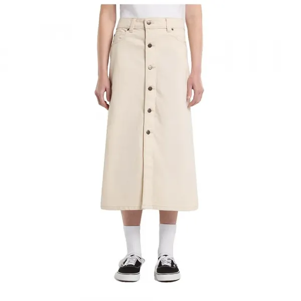 편안함과 내구성을 위해 11온스 슬럽 코튼 데님으로 제작되었으며, 이 5포켓 스커트는 지퍼 플라이 버튼 클로저, 금속 리벳이 있는 앞면 포켓, 뒷면 패치 포켓, 그리고 빨간색 Dickies 직조 라벨이 특징입니다.