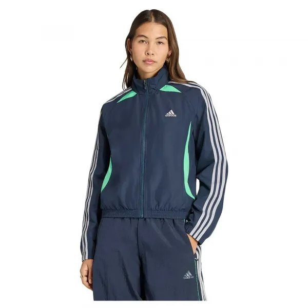 이 트랙탑은 편안한 평직 폴리에스터 원단으로 제작되어, 보는 것만큼이나 입었을 때도 기분이 좋습니다.