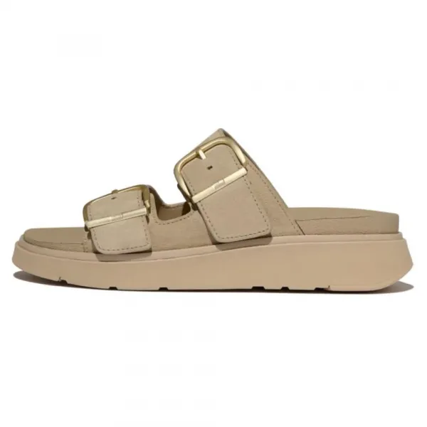 감각적인 청키 솔과 부드러운 고품질 가죽으로 제작된 심플한 어퍼를 자랑하는 투 스트랩 Gen-FF 슬라이더는 두 개의 사각형 브러시드 메탈 버클로 고정되어 맞춤형 착용감을 제공합니다.