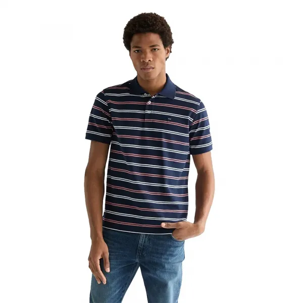 이 부드럽고 활용도 높은 스트라이프 폴로 셔츠는 세미 캐주얼 룩에 완벽한 필수 아이템입니다.
