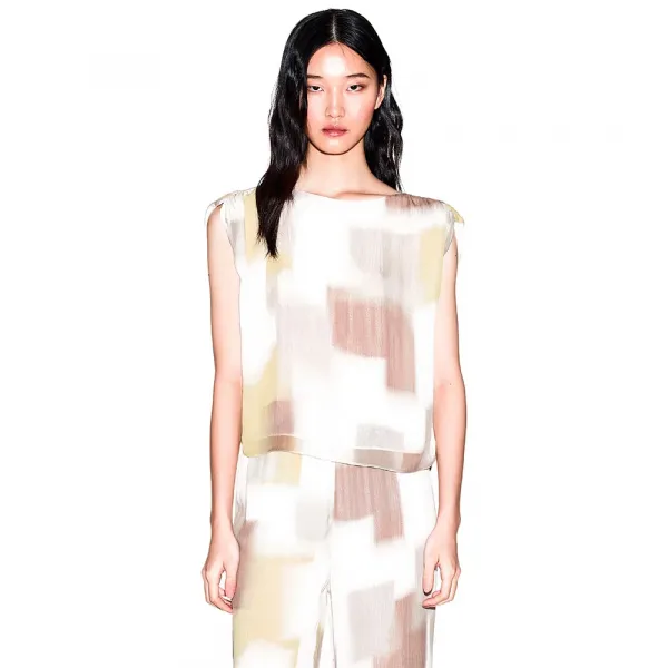 라이닝이 있는 박시핏 민소매 블라우스.