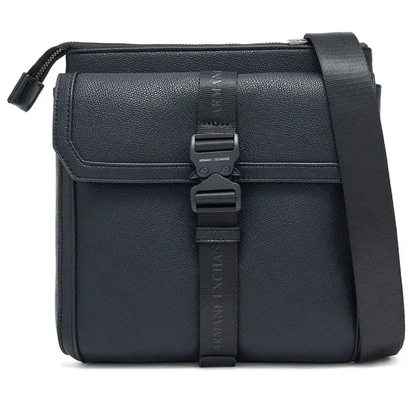 앞면 플랩은 눈에 띄는 버클과 스트랩 디테일로 고정되어 기능성과 우아한 디자인을 결합했습니다.