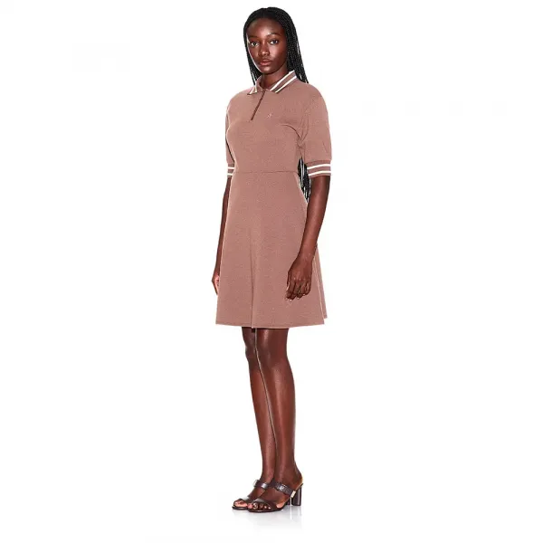 フィットアンドフレアカットのドレス、ハーフジップクロージャー付きポロカラー、襟とアームホールにコントラストインサート付き。 パーソナライゼーションは胸元で行います。