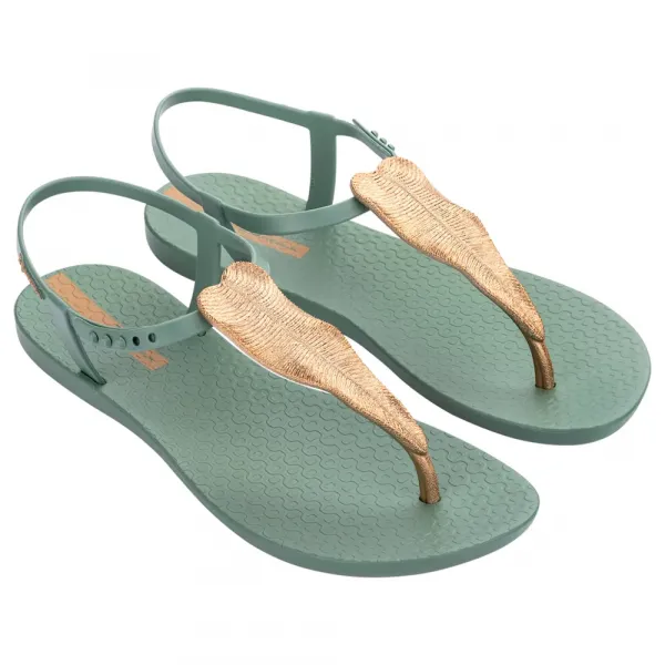 신고 어디를 가든 빛나세요! --- 기술 사양: * 대상 그룹: 여성 * 제품 유형: 샌들 * 스타일: 살로메 / T바 샌들 * 풋베드: 질감 있는 표면의 해부학적 디자인 * 발가락 유형: 오픈 토 * 주요 특징: 메탈릭 마감의 장식용 잎사귀 모양 중앙 스트랩 * 특별 속성: 100% 비건 친화적