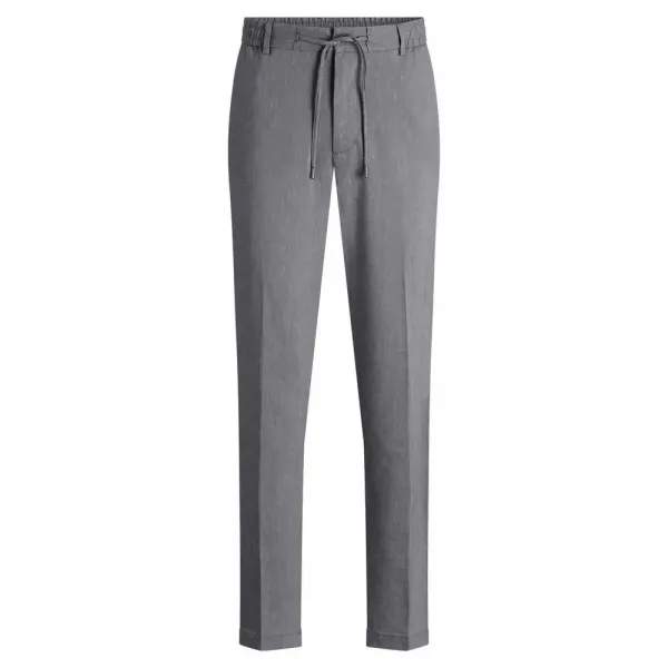 특징: - 모던 핏 - 레귤러 라이즈 - 버튼 및 지퍼 잠금 - 드로스트링 - 바지 앞 주머니: 프렌치 포켓 - 바지 뒷 주머니: 웰트 포켓 사양: - 소재: 51% 리넨, 30% 폴리에스터, 16% 비스코스, 3% 엘라스테인, 안감: 65% 폴리에스터, 35% 면 관리: - 30°C 약한 섬세 코스 세탁 - 표백 금지 - 기계 건조 금지 - 낮은 온도로 다림질 - 섬세한 화학 드라이클리닝 P